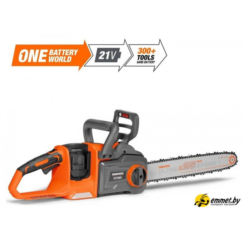аккумуляторная, полупрофессиональная, 21 В, шаг цепи: 3/8 дюйма, длина шины: 40 см, без аккумулятора в комплекте, быстрое натяжение цепи, 6.7 кг