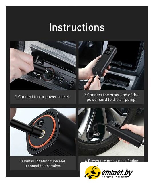 Автомобильный компрессор Baseus Super Mini Inflator Pump CRCQ000001