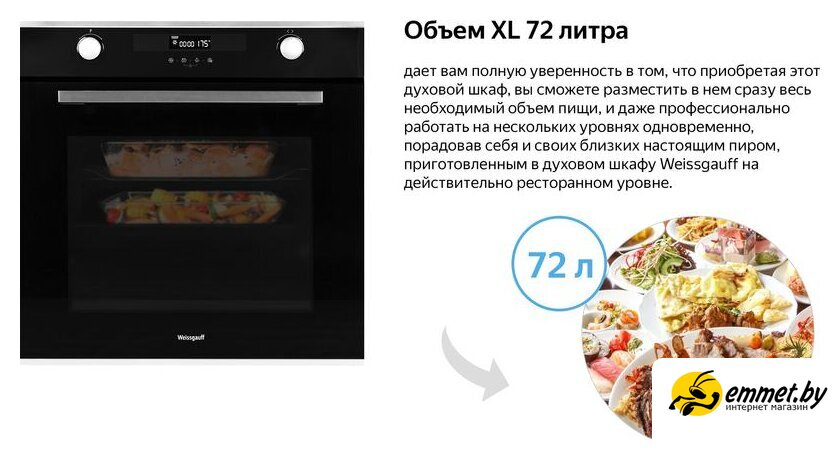 электрический с конвекцией, объем 72 л, 12 режимов, очистка паровая, проволочные направляющие, энергопотребление A+. Профессиональная консультация! Доброжелательные и тактичные курьеры, ответят на все интересующие вопросы! Доставка бесплатная, исключениями являются доставка крупногабаритного груза и доставка по регионам! Возможен самовывоз!