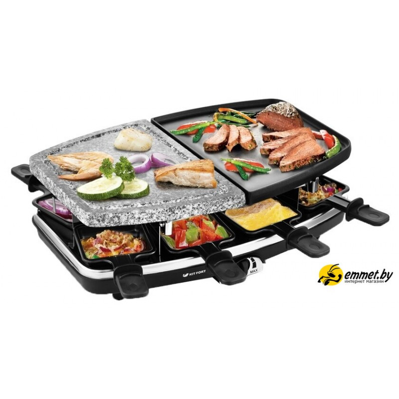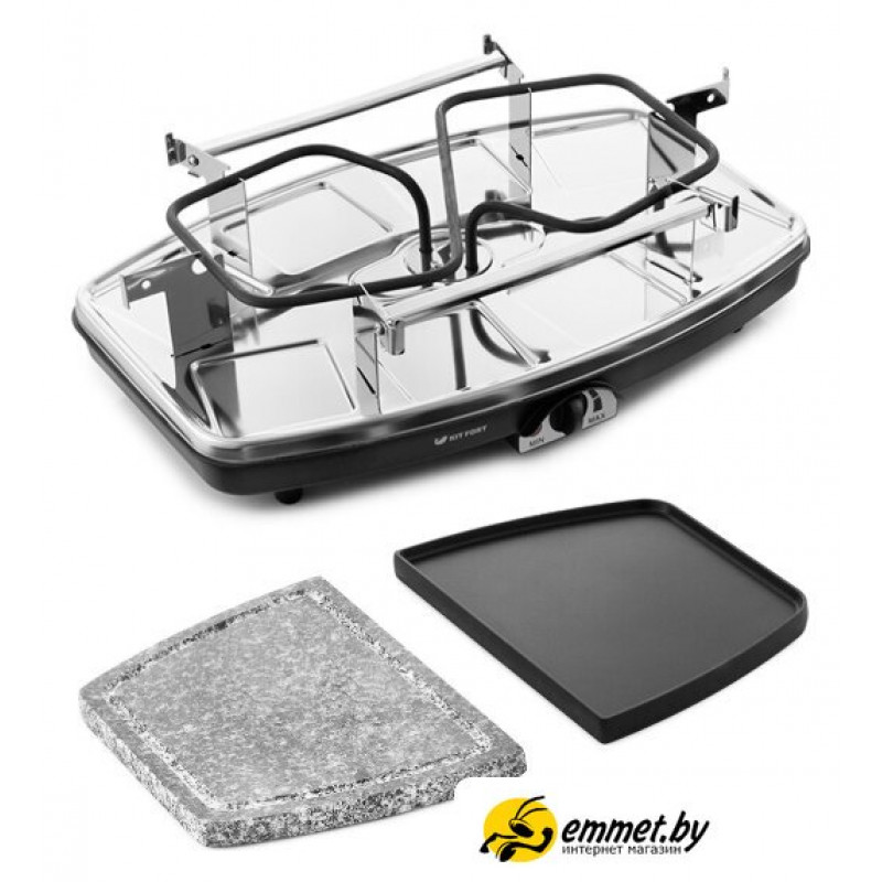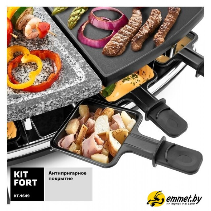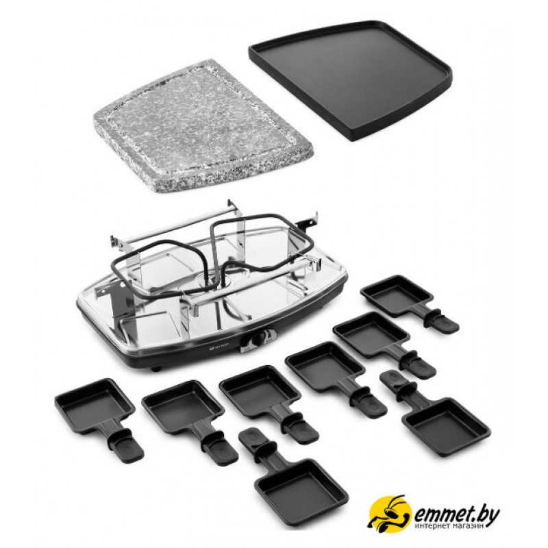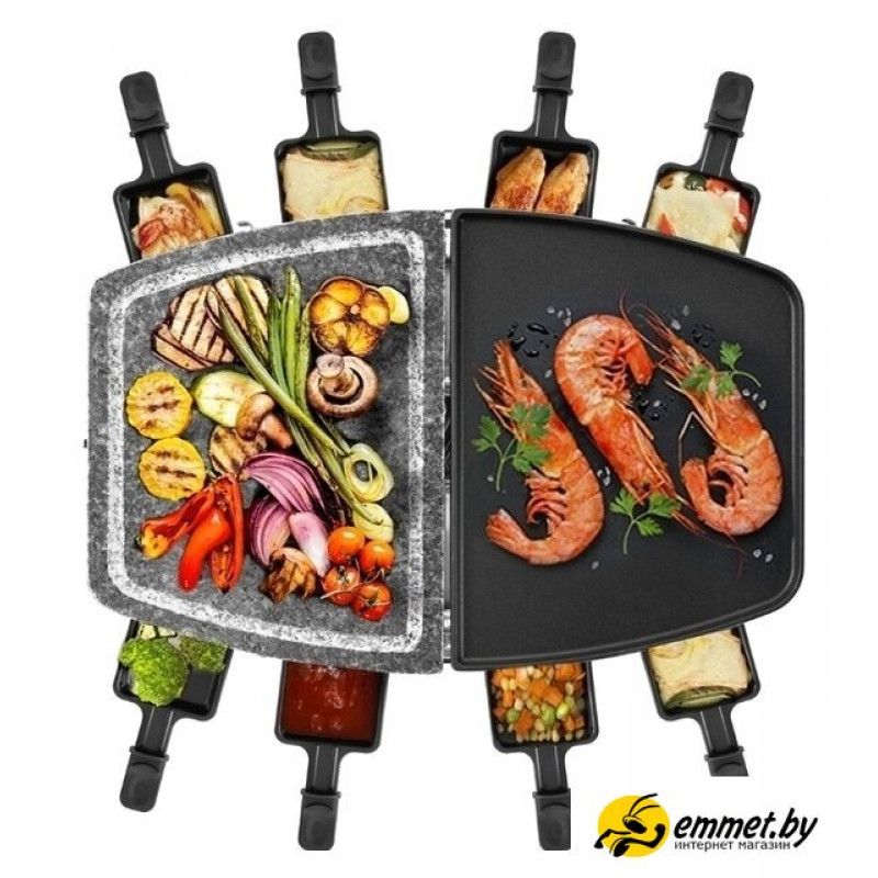 | Комплектация | Раклетница - 1 штКаменная плита - 1 штПанель с антипригарным покрытием - 1 штПорционные сковородки с антипригарным покрытием - 8 штРуководство по эксплуатации - 1 штГарантийный талон - 1 шт |