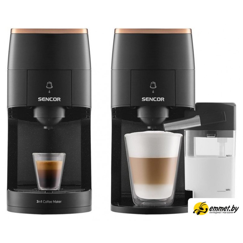 1450 Вт, корпус металл/пластик, капучинатор автоматический, используемый кофе: молотый/чалды/капсулы Nespresso Original/Dolce Gusto, цвет черный