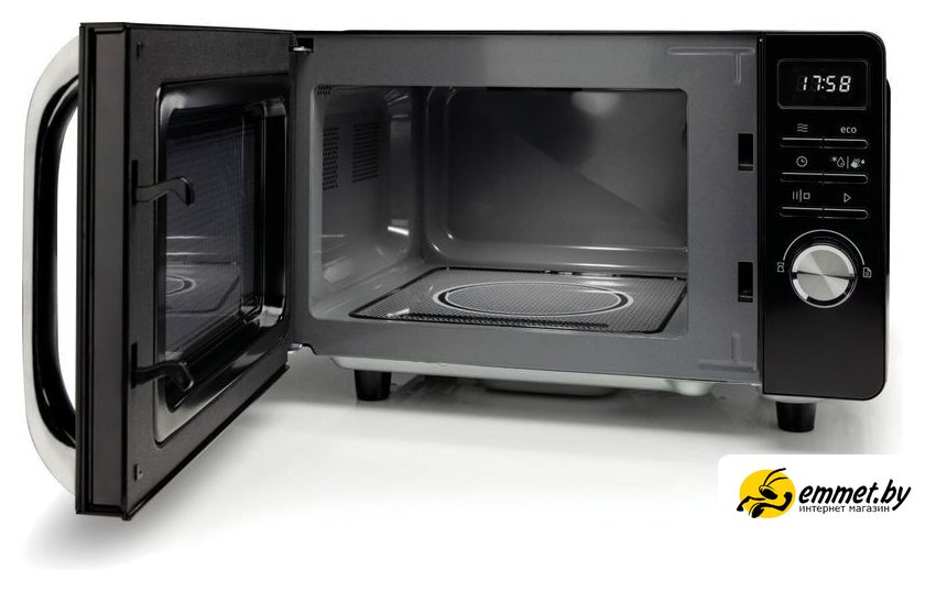 отдельностоящая, микроволны (соло), объем 20 л, выходная мощность микроволн 700 Вт, управление электронное, автоприготовление, авторазмораживание, цвет черный