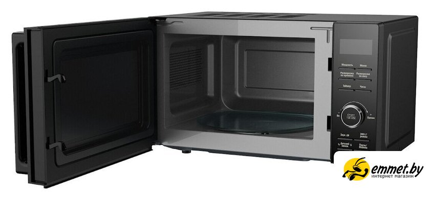 отдельностоящая, микроволны (соло), объем 20 л, выходная мощность микроволн 700 Вт, управление электронное, автоприготовление, авторазмораживание, цвет черный