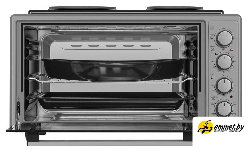 электрический, мощность духовки 1500 Вт, 48 л, конвекция, конфорки