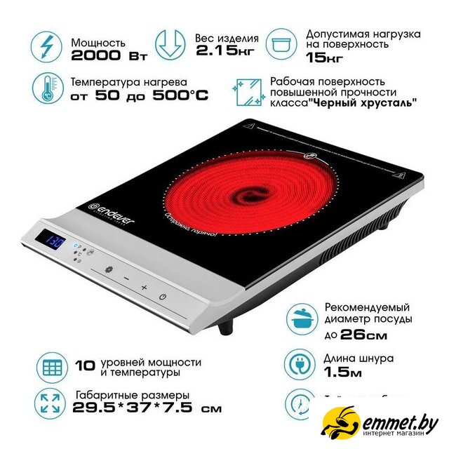 инфракрасная плита, 1 конфорка, 2000 Вт, 29.5×37×7.5 см