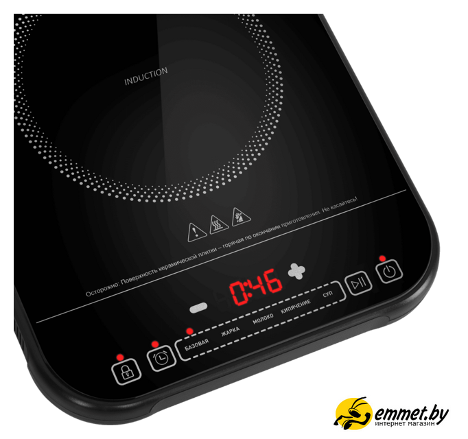 индукционная плита, 1 конфорка, 2000 Вт, 30×38×4.3 см