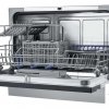 загрузка на 6 комплектов посуды, электронное управление, 7 программ, белый цвет, сушка: стандартная (конденсация), индикация на полу: нет