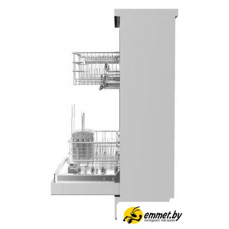 загрузка на 9 комплектов посуды, сенсорное управление, 6 программ, 44.8x55x82 см, белый цвет, сушка: стандартная (конденсация), индикация на полу: нет