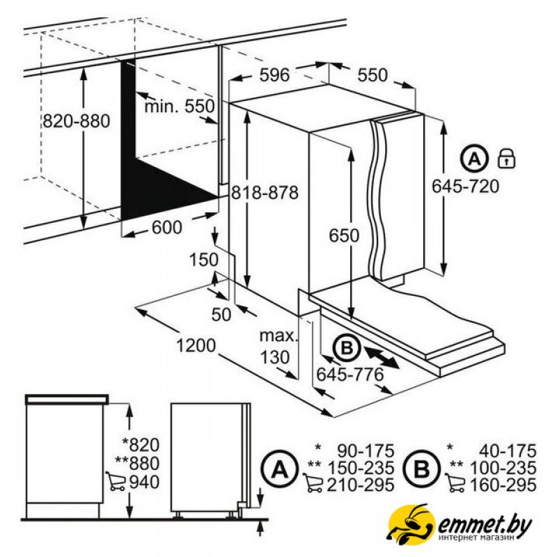 загрузка на 14 комплектов посуды, сенсорное управление, 8 программ, 59.6x55x82 см, черный цвет, сушка: с открыванием дверцы, индикация на полу: проекция дисплея