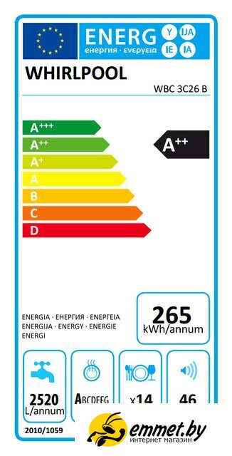 Встраиваемая посудомоечная машина Whirlpool WBC 3C26 B