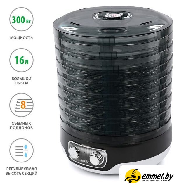Сушилка для овощей и фруктов Marta MFD-208PS (темный обсидиан)