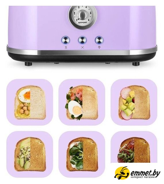 815 Вт, количество тостов: 2, корпус: пластик/металл, 6 степеней обжаривания, цвет сиреневый