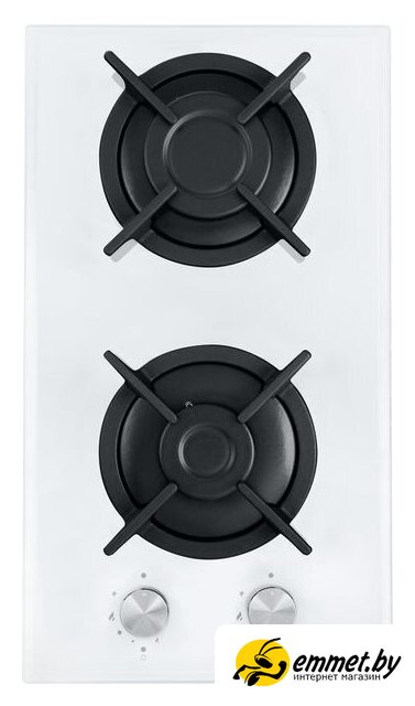 газовая на 2 конфорки, закаленное стекло, мощность: 4300 Вт, автоматический электроподжиг, газ-контроль, решетки: чугун, независимая установка, размеры (ШхГ): 29x51.5 см