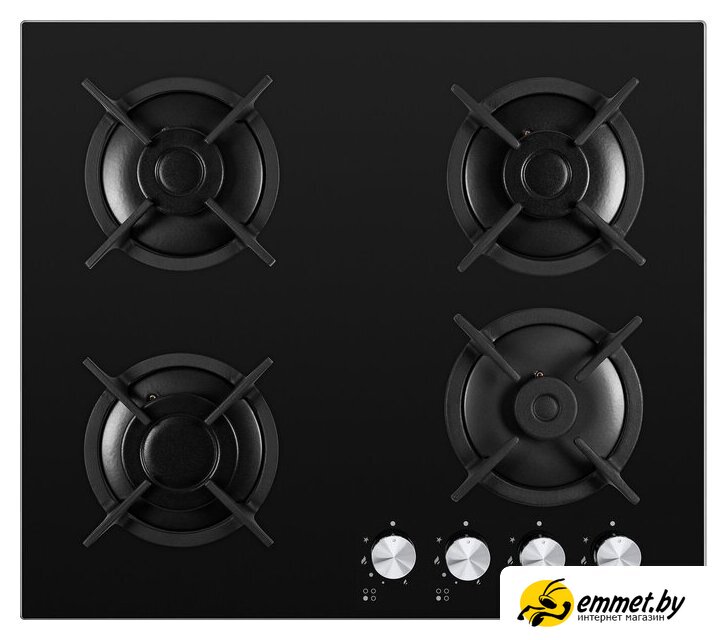 газовая на 4 конфорки, закаленное стекло, мощность: 7000 Вт, автоматический электроподжиг, газ-контроль, решетки: чугун, независимая установка, размеры (ШхГ): 59x52 см