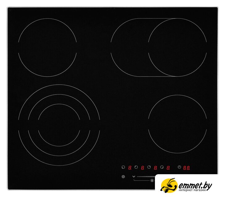 HiLight на 4 конфорки, cтеклокерамика, мощность: 6700 Вт, независимая установка, размеры (ШхГ): 60x52 см