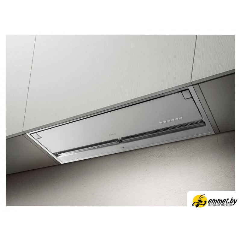 конструкция скрытая, монтаж для встраивания, ширина 119.4 см, управление электронное/кнопочное, производительность вытяжки 365 м³/ч, цвет нержавеющая сталь