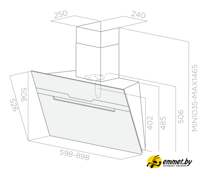 конструкция наклонная, монтаж настенный, управление сенсорное, производительность мотора 1200 м³/ч, ширина 59.8 см