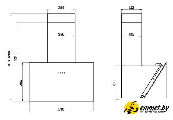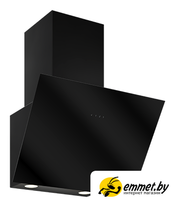 конструкция наклонная, монтаж настенный, ширина 59 см, управление электронное/сенсорное, производительность мотора 650 м³/ч, цвет черный