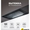 конструкция скрытая, монтаж для встраивания, ширина 52 см, управление сенсорное, производительность мотора 1050 м³/ч, цвет черный