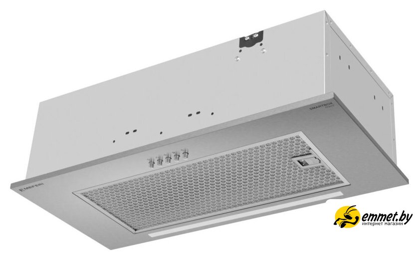 конструкция скрытая, монтаж для встраивания, ширина 60 см, управление механическое/кнопочное, производительность мотора 900 м³/ч, цвет нержавеющая сталь
