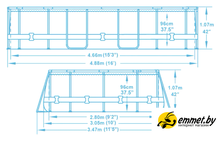 семейный, каркасный, овальная форма, 10949 л, фильтр-насос в комплекте. Профессиональная консультация! Доброжелательные и тактичные курьеры, ответят на все интересующие вопросы! Доставка бесплатная, исключениями являются доставка крупногабаритного груза и доставка по регионам! Возможен самовывоз!