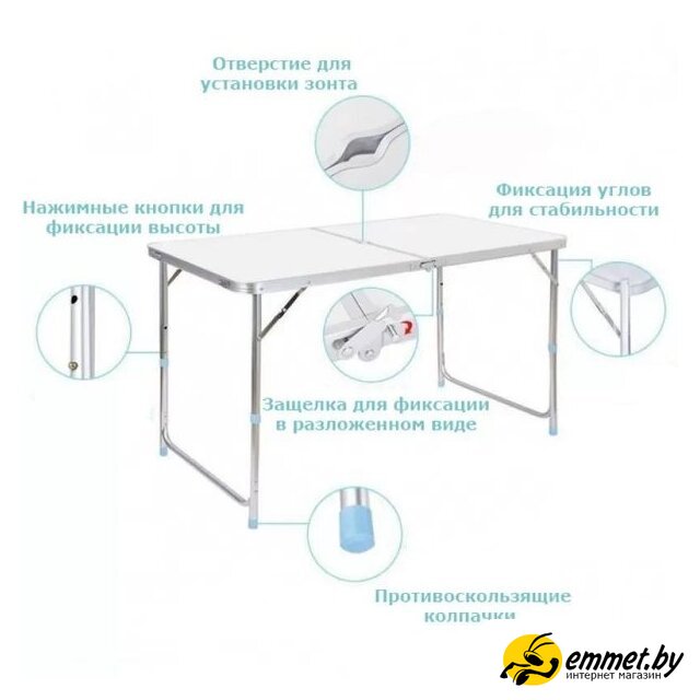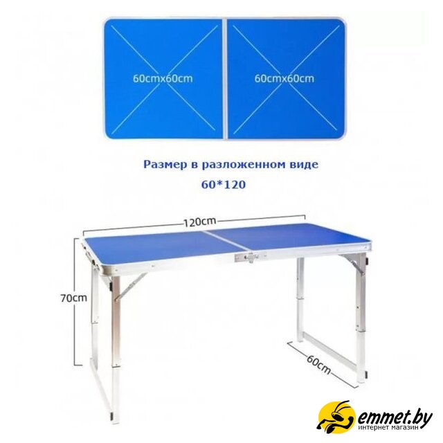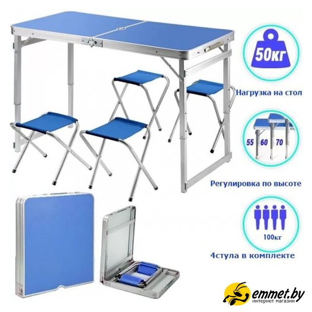 стол со стульями, пластик/МДФ/полиэстер, регулировка высоты, ручка для переноски, синий цвет, 120x60x70 см, 7.2 кг