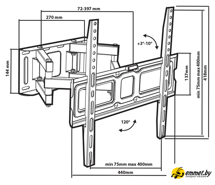 настенный кронштейн для ЖК-телевизора 26-55", наклон 10°, поворот 120°, цвет черный. Профессиональная консультация! Доброжелательные и тактичные курьеры, ответят на все интересующие вопросы! Доставка бесплатная, исключениями являются доставка крупногабаритного груза и доставка по регионам! Возможен самовывоз!