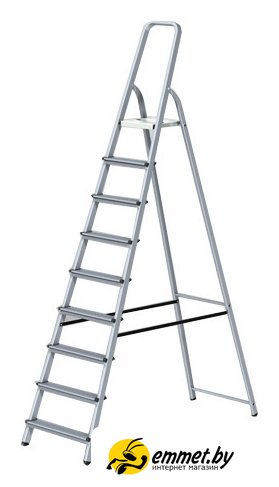 лестница-стремянка, 9 ступеней, алюминий, верхняя площадка. Профессиональная консультация! Доброжелательные и тактичные курьеры, ответят на все интересующие вопросы! Доставка бесплатная, исключениями являются доставка крупногабаритного груза и доставка по регионам! Возможен самовывоз!