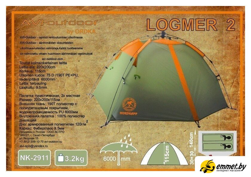 Треккинговая палатка AVI-Outdoor Logmer 2911-NK