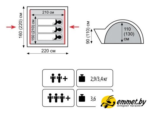 треккинговая, весна/лето/осень, 2-местная, 2 входа, 1 комната, противомоскитная сетка, штормовые оттяжки