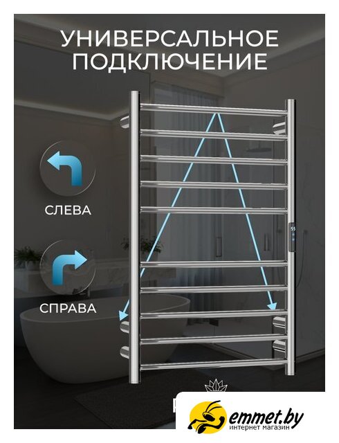 электрический, "лесенка", нержавеющая сталь, подключение боковое, таймер, терморегулятор, 63x50 см, цвет: хром