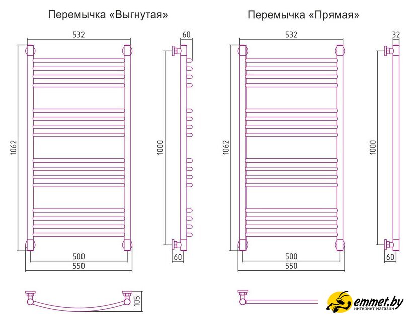 водяной, "лесенка", нержавеющая сталь, подключение нижнее/диагональное, 106.2x55 см, цвет: полированная сталь