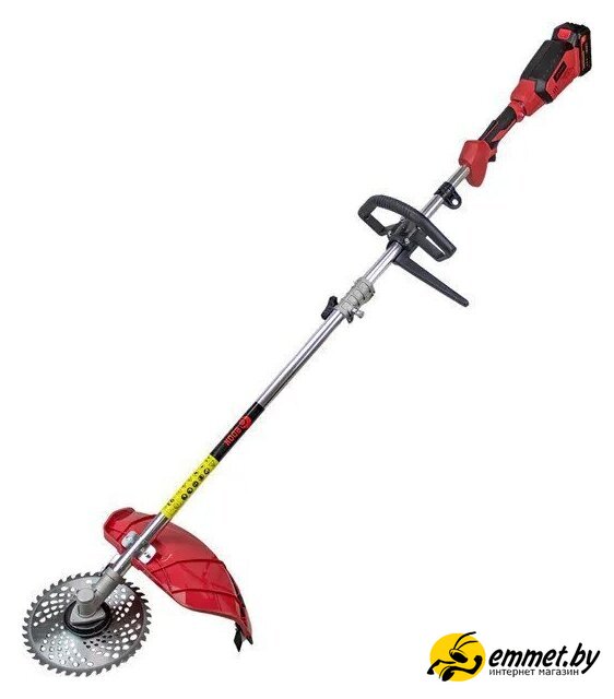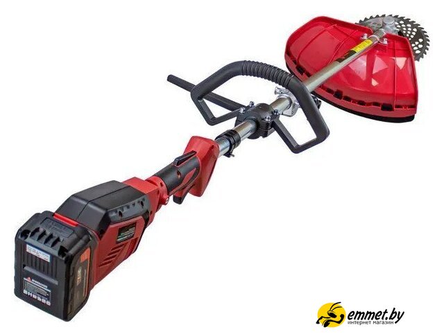 аккумуляторный, оснастка: леска+металлический диск, ширина скашивания: 42 см, 21 В, аккумулятор в комплекте, 5 кг