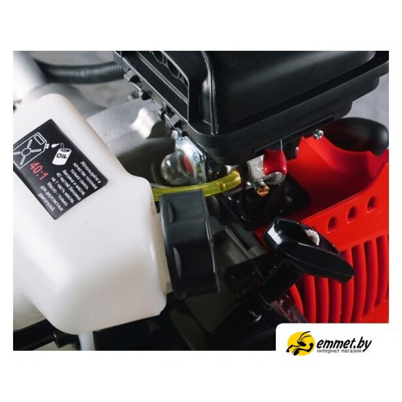 | Аксессуары | -моторный блок- штанга- полуавтоматическая шпуля с леской (посадка М10х1,25 мм)- стальной триммерный трехлопастный нож- ремень наплечный- рукоятка велосипедного типа- защитный кожух- набор инструментов- канистра для бензосмеси- очки защитные- инструкция по эксплуатации |