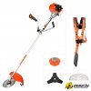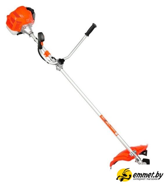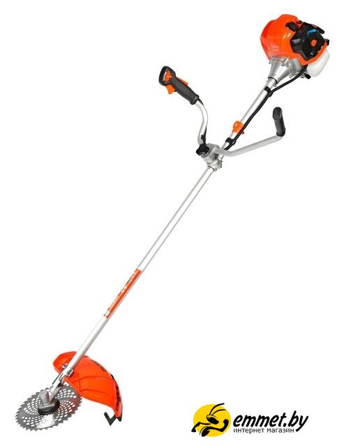 бензиновый, оснастка: леска+металлический нож+металлический диск, ширина скашивания 25.5-42 см, вес 9.2 кг