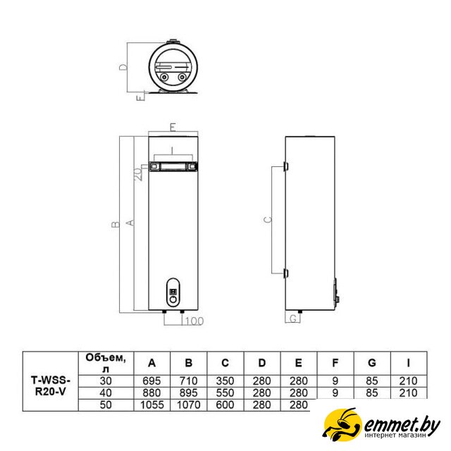 вертикальный, 40 л, 1.5 кВт, время нагрева 50 мин, 89.5×28×28 см