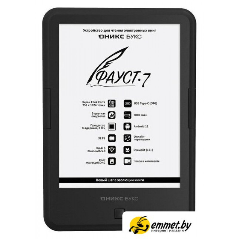 экран 6" E-Ink Carta 1200, 758 x 1024, сенсорный, с подсветкой, память 32 Гб, карты памяти, Wi-Fi