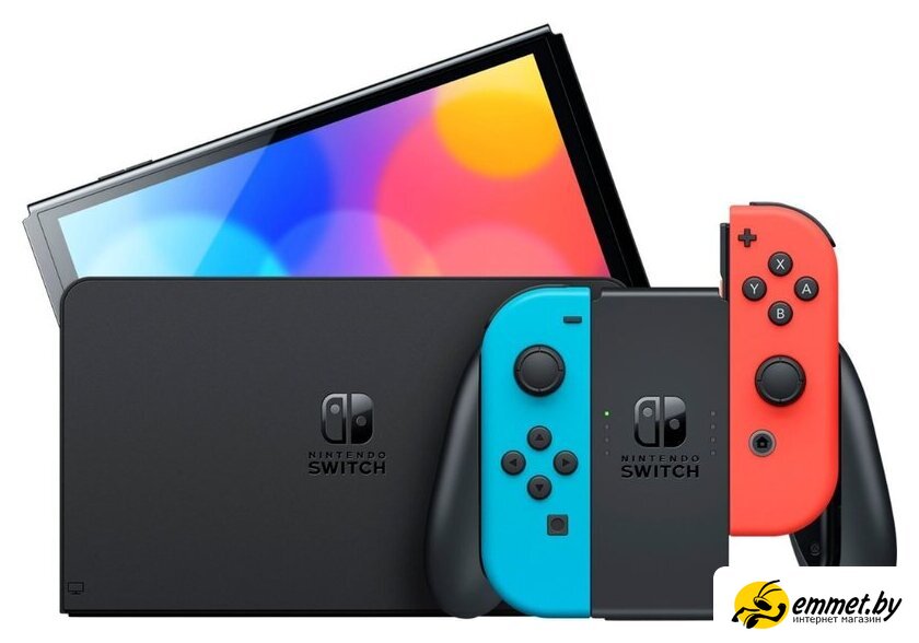 Игровая приставка Nintendo Switch OLED (черный, с неоновыми Joy-Con)