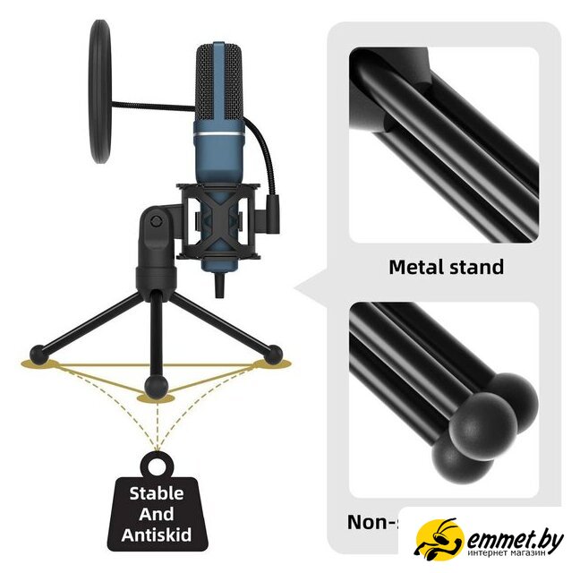 электретный (малый конденсатор), настольный, для стриминга и подкастов, кардиоидная направленность, 100-16000 Гц, разъем подключения USB Type-A, длина кабеля 1.5 м