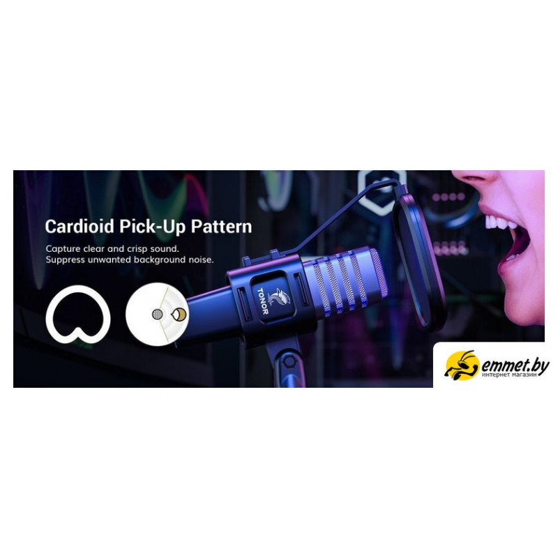 электретный (малый конденсатор), настольный, для стриминга и подкастов, кардиоидная направленность, 50-20000 Гц, разъем подключения USB Type-A, длина кабеля 2 м