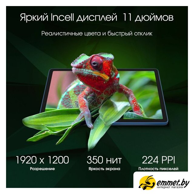 11.0" IPS, 60 Гц (1920x1200), Android, Mediatek Helio G85, 8 ГБ / 256 ГБ, Wi-Fi + сотовая связь (nanoSIM + nanoSIM), аккумулятор 7000 мАч