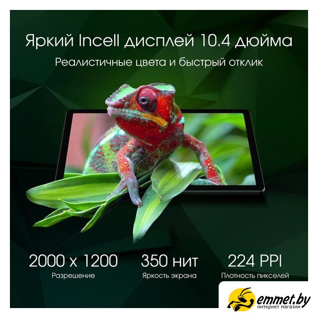 10.4" IPS, 60 Гц (2000x1200), Android, UniSoC Tiger T606, 6 ГБ / 128 ГБ, Wi-Fi + сотовая связь (nanoSIM + nanoSIM), аккумулятор 7000 мАч