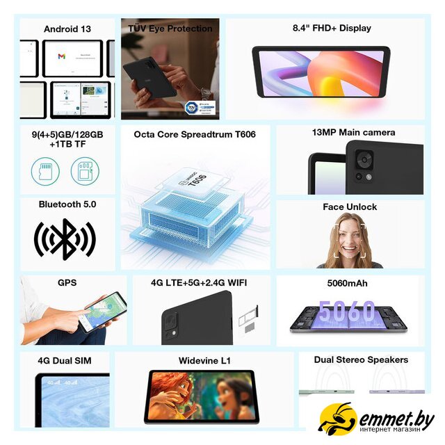 8.4" IPS, 60 Гц (1920x1200), Android, Unisoc Tiger T606, ОЗУ 4 ГБ, флэш-память 128 ГБ, цвет черный. Профессиональная консультация! Доброжелательные и тактичные курьеры, ответят на все интересующие вопросы! Доставка бесплатная, исключениями являются доставка крупногабаритного груза и доставка по регионам! Возможен самовывоз!