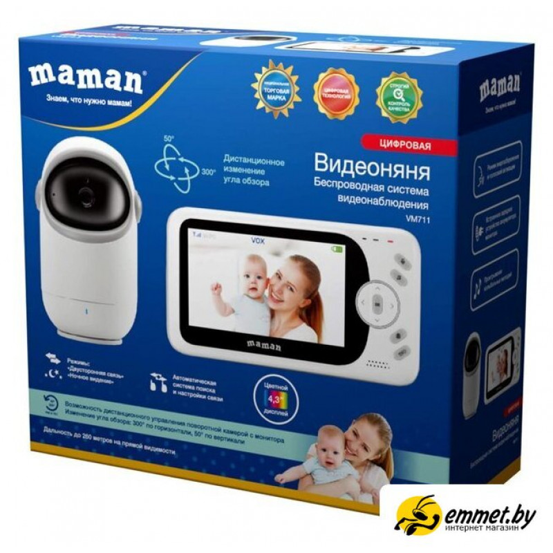 видеоняня цифровая, обратная связь, размер: 4.3 '', индикация: заряд аккумулятора/выход из радиуса действия/температура, музыка
