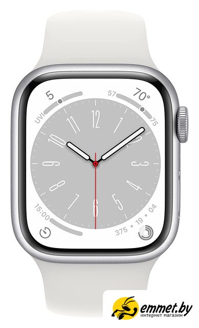 Умные часы Apple Watch Series 8 41 мм (алюминиевый корпус, серебристый/белый, спортивный силиконовый ремешок S/M)