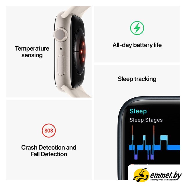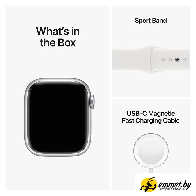 Умные часы Apple Watch Series 8 41 мм (алюминиевый корпус, серебристый/белый, спортивный силиконовый ремешок)