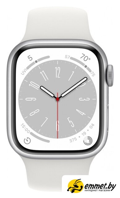 Умные часы Apple Watch Series 8 45 мм (алюминиевый корпус, серебристый/белый, спортивный силиконовый ремешок M/L)