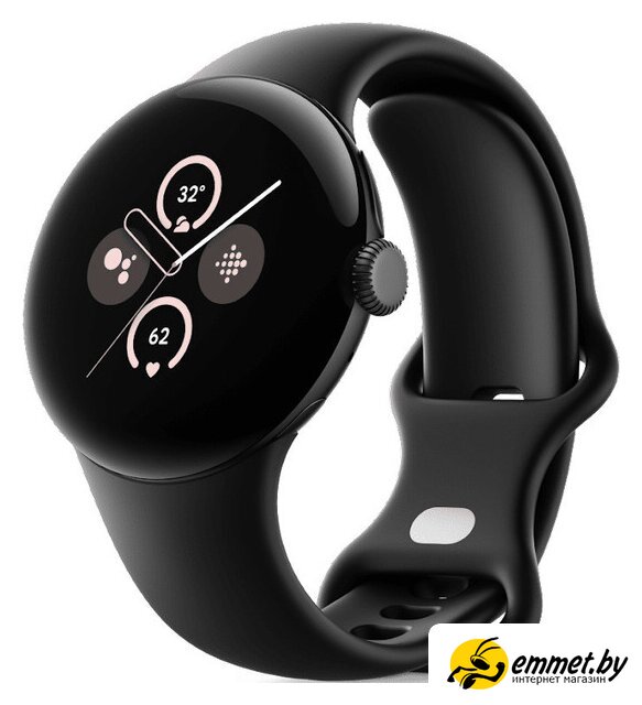 Умные часы Google Pixel Watch 2 LTE (матовый черный/обсидиан, спортивный силиконовый ремешок)