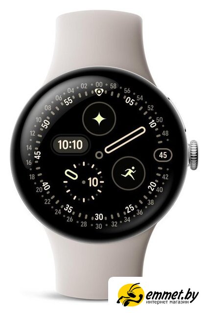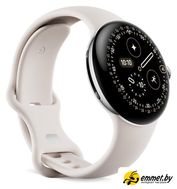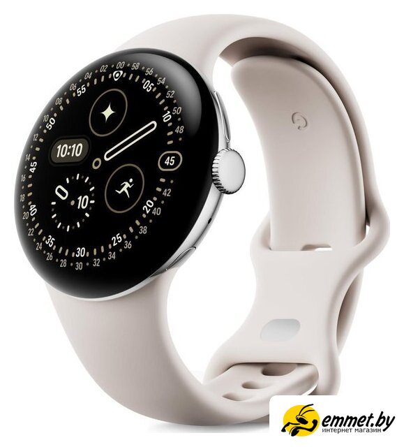 Умные часы Google Pixel Watch 4 41 мм (глянцевый серебристый/фарфор, спортивный силиконовый ремешок)