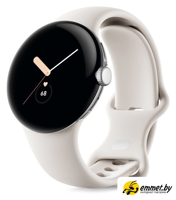 Умные часы Google Pixel Watch (глянцевый серебристый/мел, спортивный силиконовый ремешок)